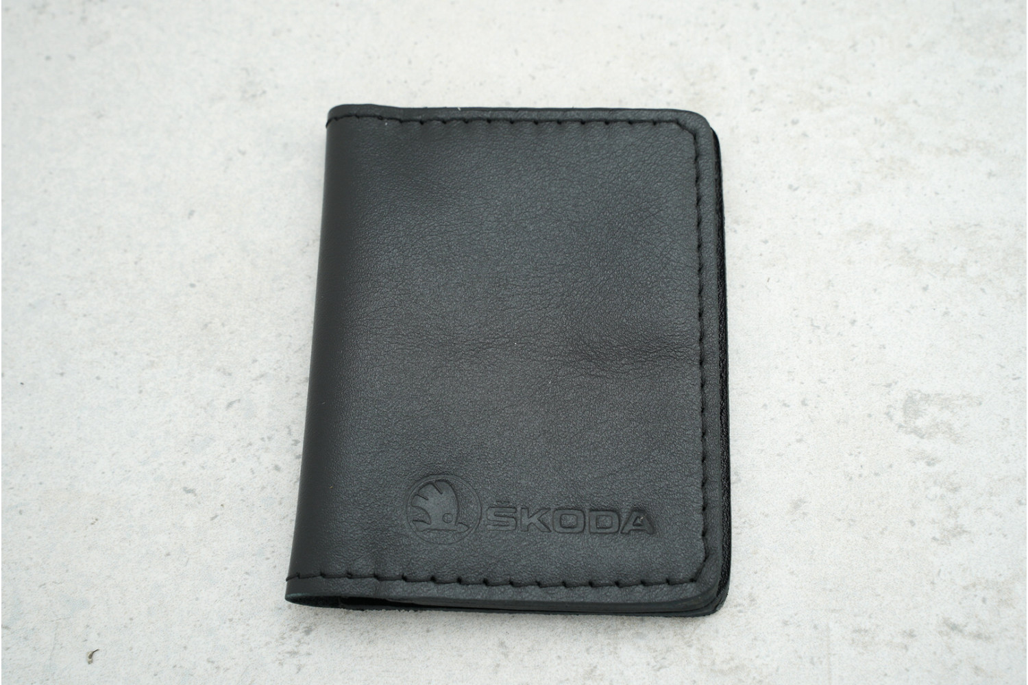 Обкладинка-картхолдер Skoda чорний зі шкіри забезпечує надійне зберігання карток і додає елегантності у щоденному користуванні.