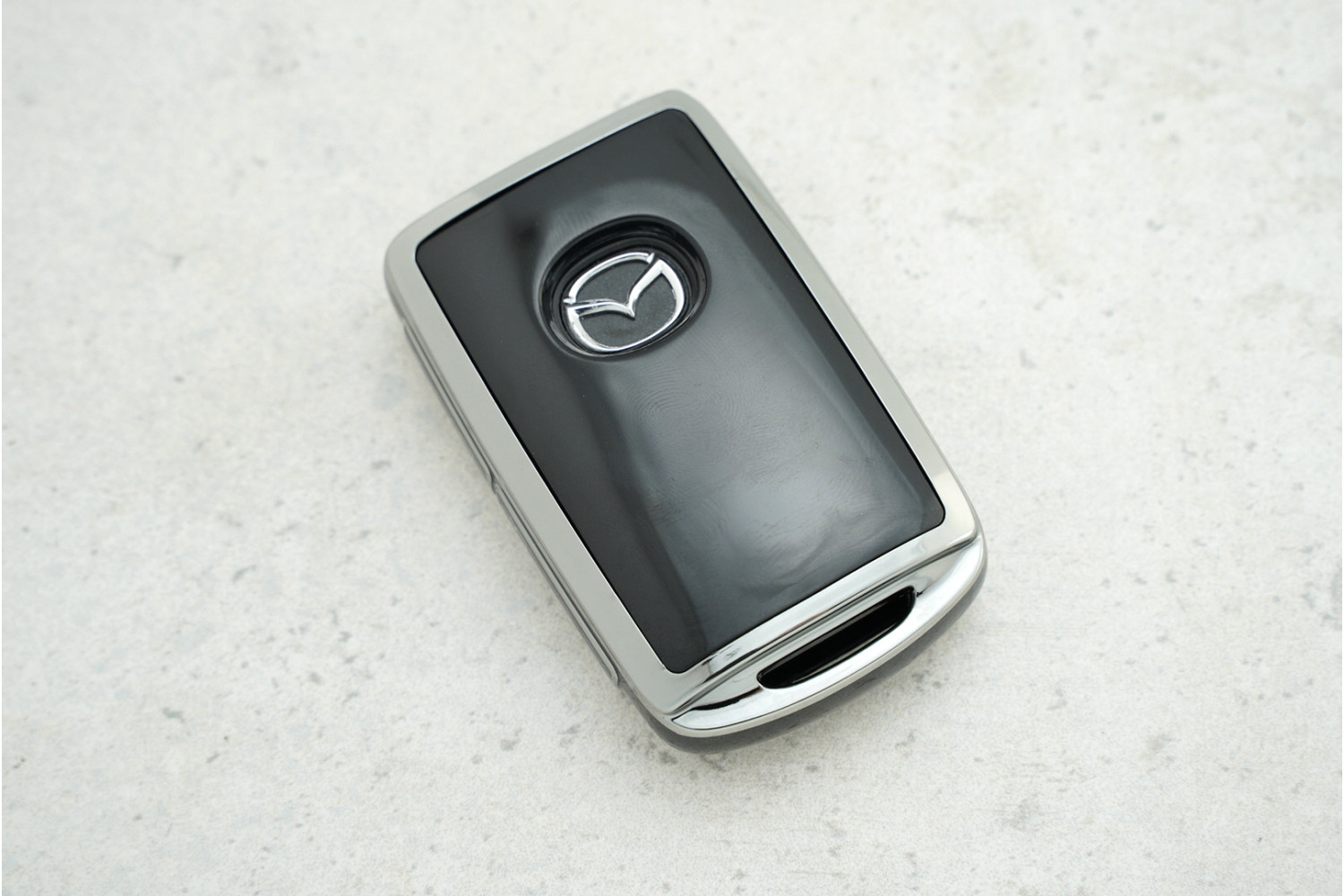 Чохол Mazda на 3 кнопки чорний-срібло з поліуретану — практичний аксесуар для захисту ключа, що поєднує стильний дизайн і довговічність для моделей CX-5 та CX-9.
