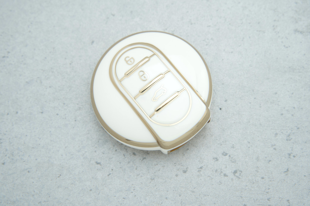 Чохол Mini Cooper Clubman 3 кнопки білий-золото надійно захищає ключ і робить його більш стильним у повсякденному використанні.