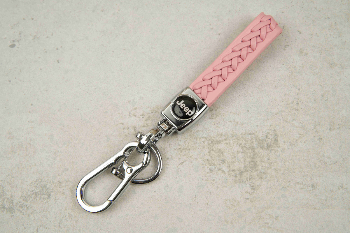Брелок Jeep плетений ремінець рожевий — стильний та практичний аксесуар для ключів, який поєднує яскравий дизайн і зручність. Ідеальне рішення для тих, хто цінує міцність, функціональність і акуратний вигляд своїх аксесуарів у повсякденному житті.