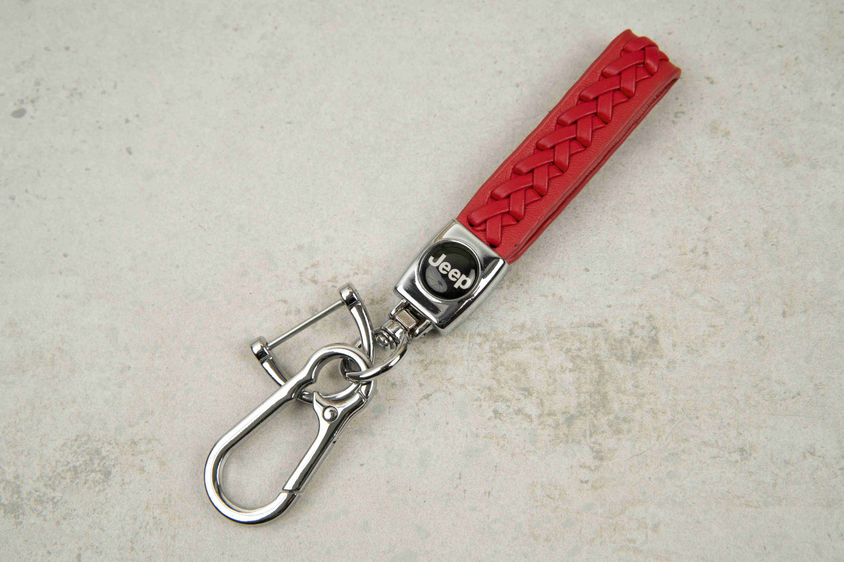 Брелок Jeep плетений ремінець червоний — яскравий та практичний аксесуар для ключів, який поєднує стиль і зручність у повсякденному використанні. Ідеальне рішення для тих, хто цінує міцність, функціональність і акуратний вигляд своїх аксесуарів.