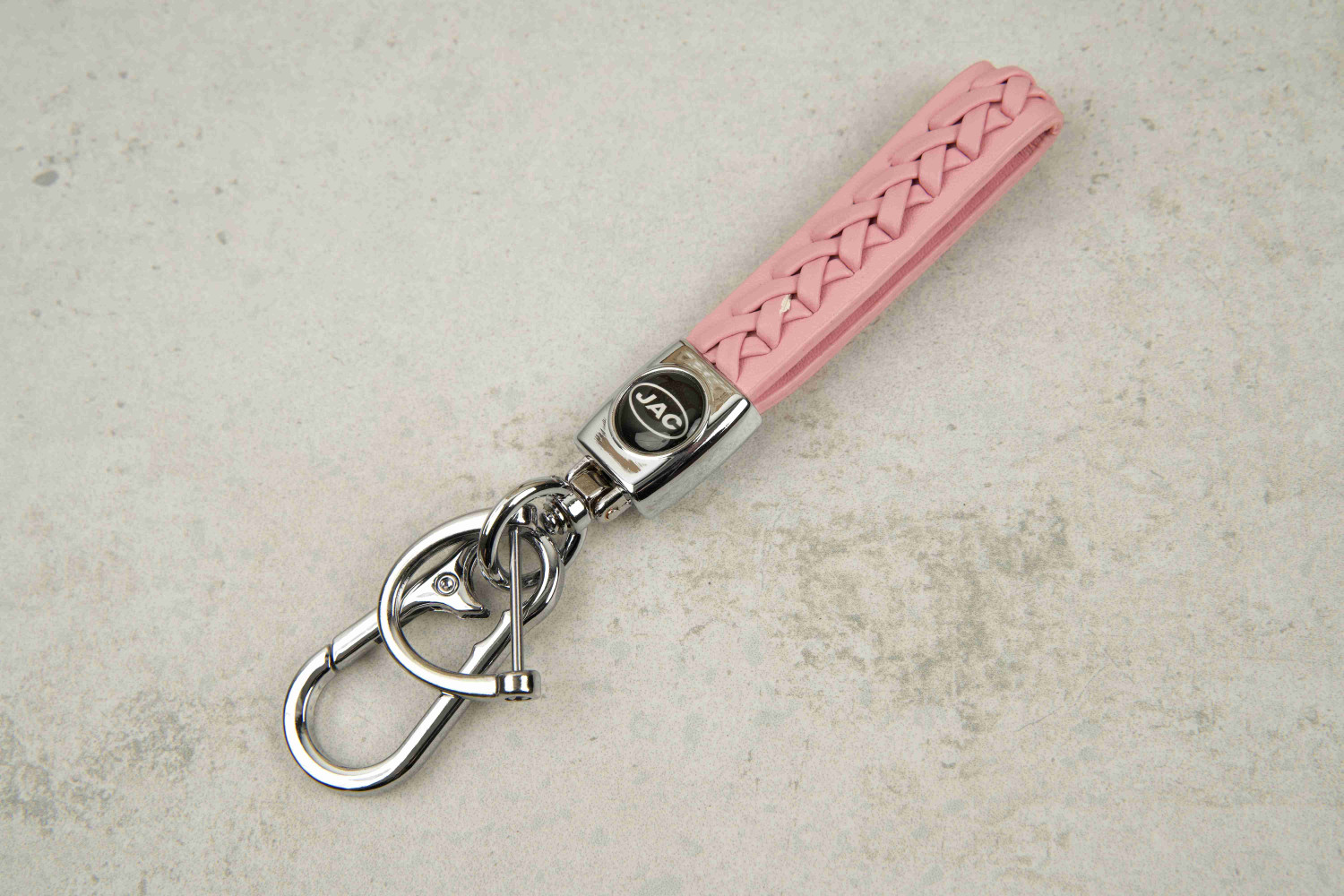 Брелок JAC плетений ремінець рожевий — компактний і зручний аксесуар для ключів, що поєднує практичність і приємний дизайн. Ідеальне рішення для тих, хто цінує зручність, надійність і стиль у щоденному використанні.