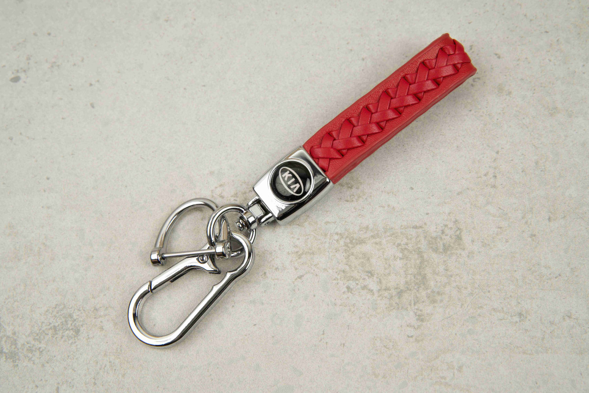 Брелок Kia плетений ремінець червоний — компактний і яскравий аксесуар для ключів, що поєднує практичність і стильний дизайн. Ідеальне рішення для тих, хто цінує зручність, надійність та естетичний вигляд у повсякденному житті.