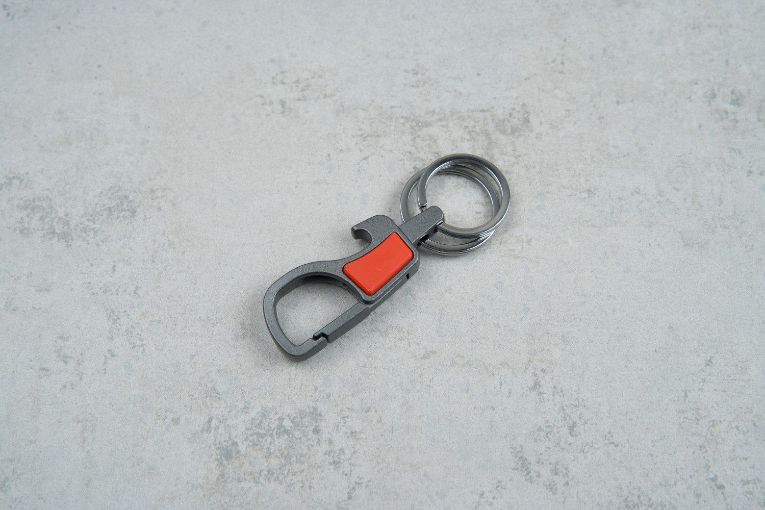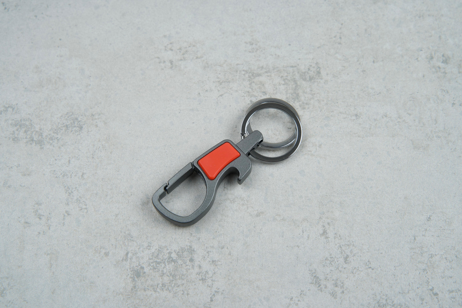 Брелок з карабіном та відкривалкою з двома кільцями — універсальний аксесуар, що поєднує функціональність і яскравий дизайн. Міцний корпус і насичений червоний колір роблять його зручним помічником і стильним доповненням до ключів.