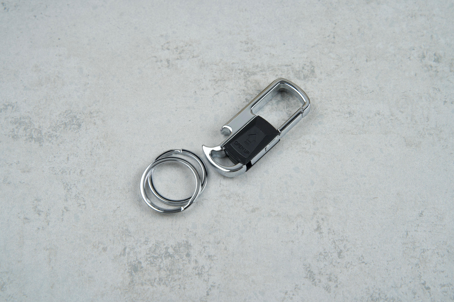 Брелок Карабін-відкривачка H8471L з кільцем чорний — універсальний та стильний аксесуар для ключів, який поєднує практичність і сучасний дизайн. Ідеальне рішення для тих, хто цінує зручність і надійність у повсякденному житті.