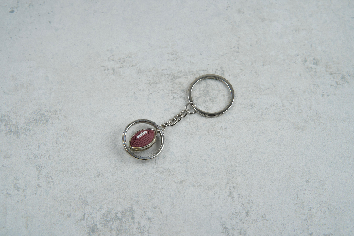 Спортивний дизайн: форма м’яча регбі додає брелоку динамічності та оригінальності.