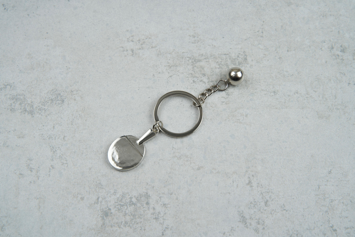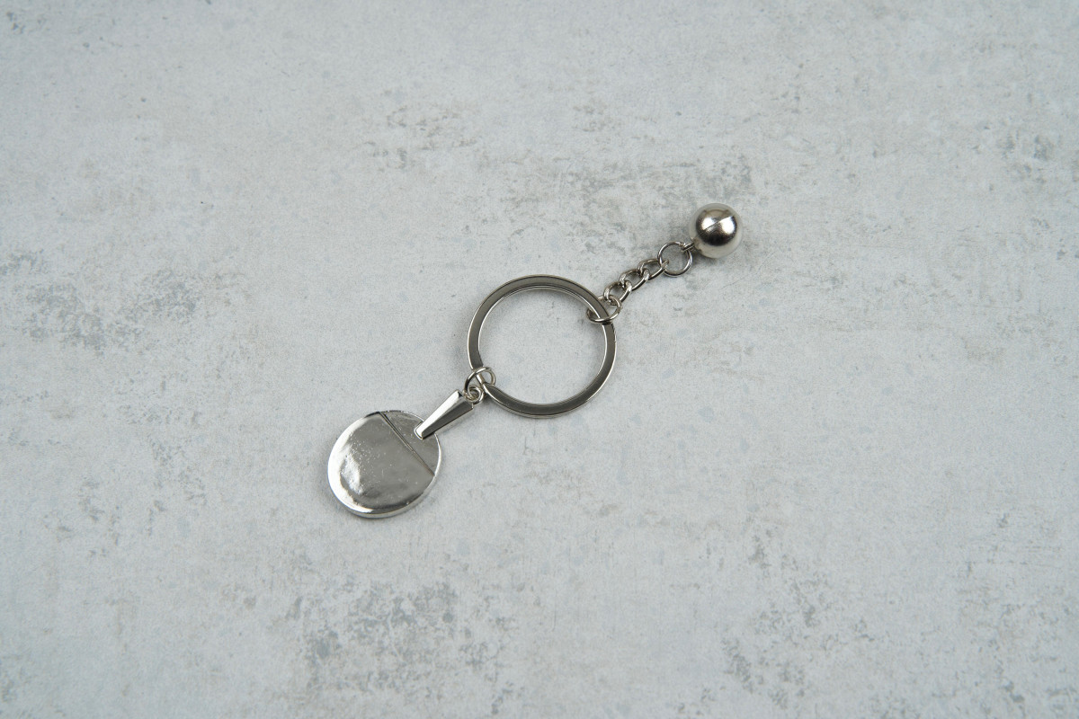 Брелок Ракетка і м’ячик для піг-понгу металевий — яскравий та практичний аксесуар для ключів, який поєднує оригінальний спортивний дизайн і функціональність. Ідеальне рішення для тих, хто цінує стильні дрібниці та спортивний дух у повсякденному житті.