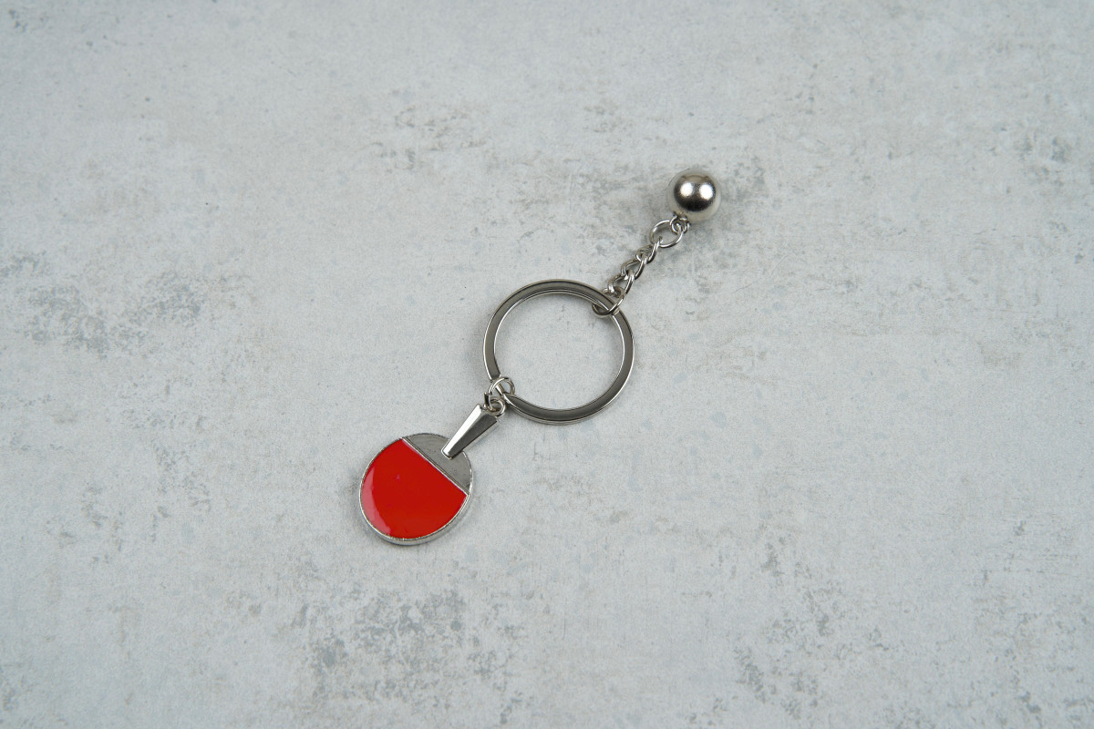 Тематика спорту: дизайн у вигляді ракетки і м’ячика піг-понг робить брелок яскравим та оригінальним.