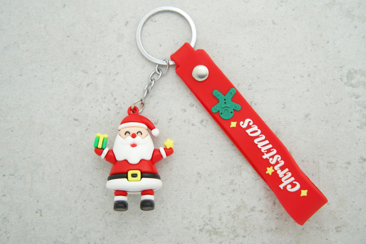 Брелок Різдвяний з ремінцем Миколай з подарунком і зірочкою (без карабіну) — компактний та яскравий аксесуар, створений для святкового настрою та зручного зберігання ключів.