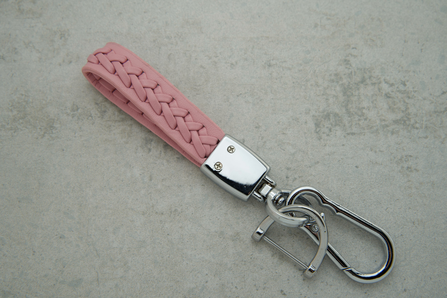 Брелок Авто плетений ремінець рожевий — стильний та практичний аксесуар для зручного зберігання ключів, який поєднує надійність і яскравий дизайн.