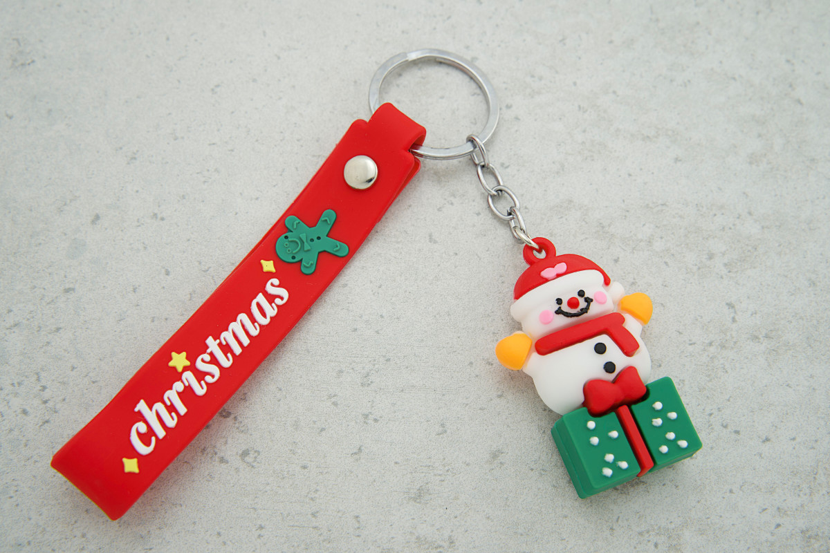 Брелок Сніговик на подарунку різдвяний з ремінцем без карабіну