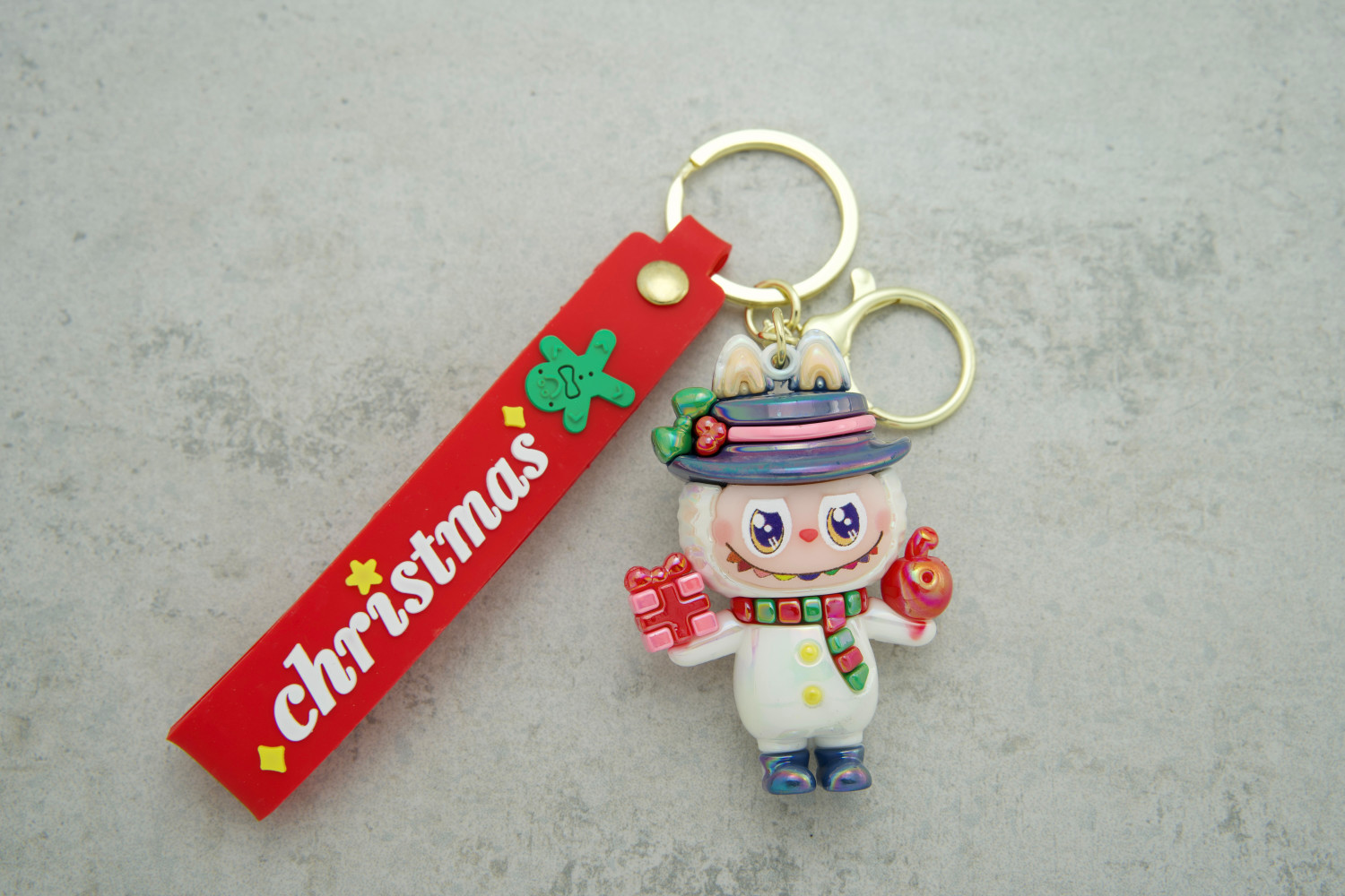 Брелок новорічна Лабубу біла стане практичним та яскравим доповненням для щоденного використання або чарівним маленьким подарунком до свят.