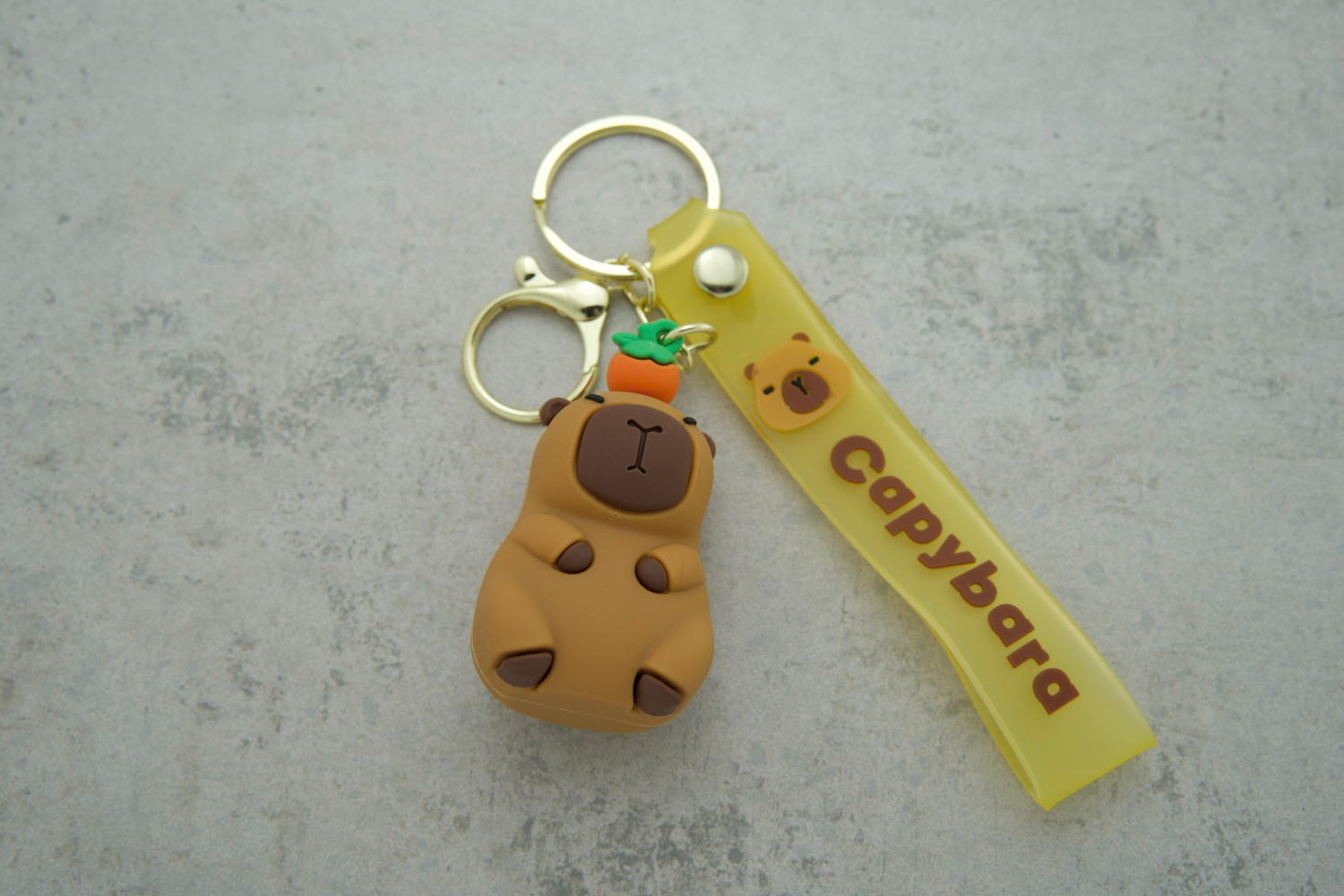 Брелок Капібара з мандаринкою — милий та практичний аксесуар для ключів, рюкзака або сумки, який зображує капібару з апетитною мандаринкою, додаючи веселий настрій у повсякденне життя.