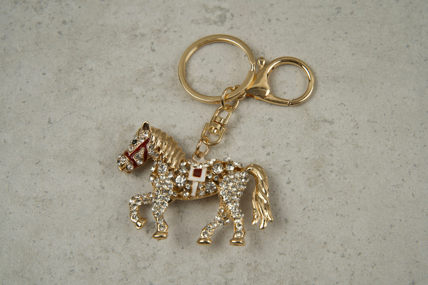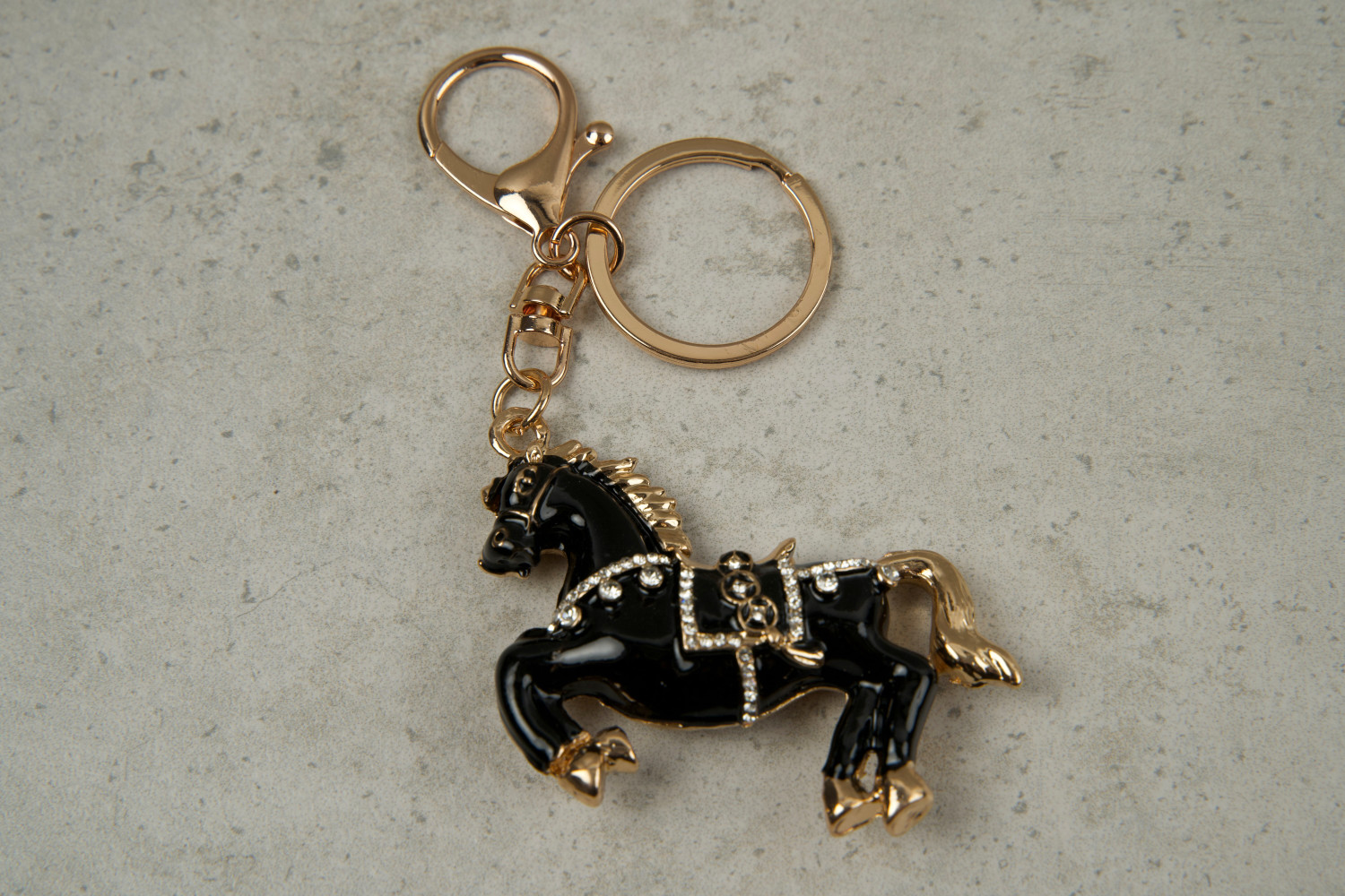 Брелок Кінь металевий зі стразами мікс — стильний та яскравий аксесуар для ключів або сумки, який поєднує міцний метал та декоративні стрази, додаючи шарму щоденним речам.