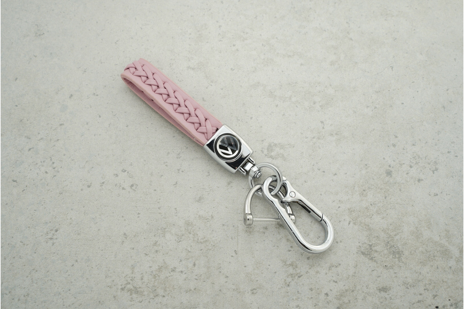 Брелок VW плетений ремінець рожевий поєднує практичність та естетику, роблячи щоденне користування ключами комфортним і стильним.