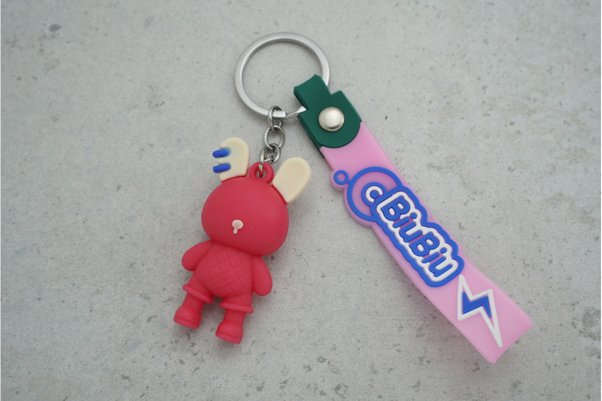 Брелок “Безликий Заєць” червоний з ремінцем — яскравий та практичний аксесуар для ключів або дрібних речей, який поєднує компактність і зручність носіння.
