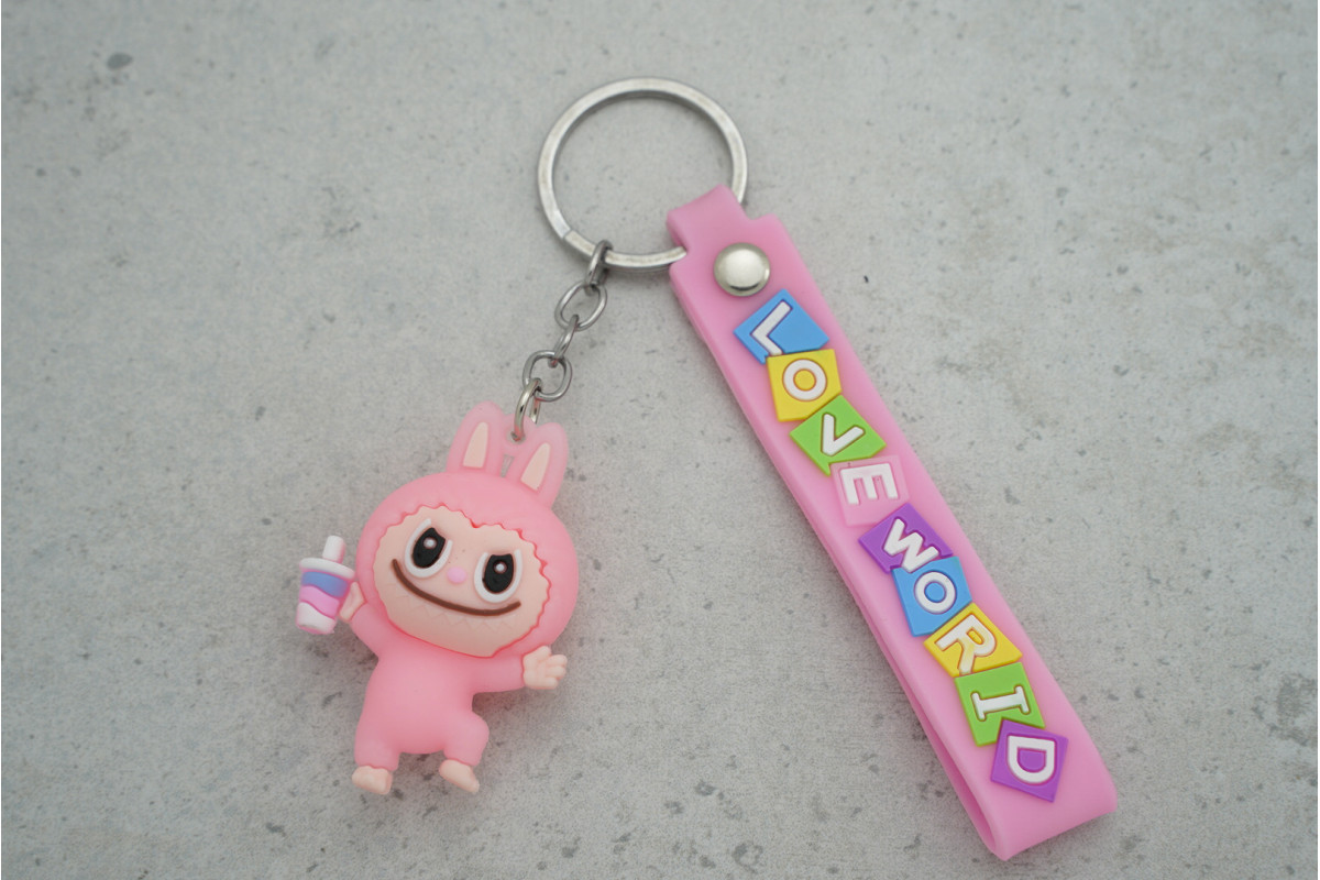 Брелок Labubu Love World рожевий з ремінцем — милий та практичний аксесуар для ключів або дрібних речей, який поєднує зручність і приємний дизайн.