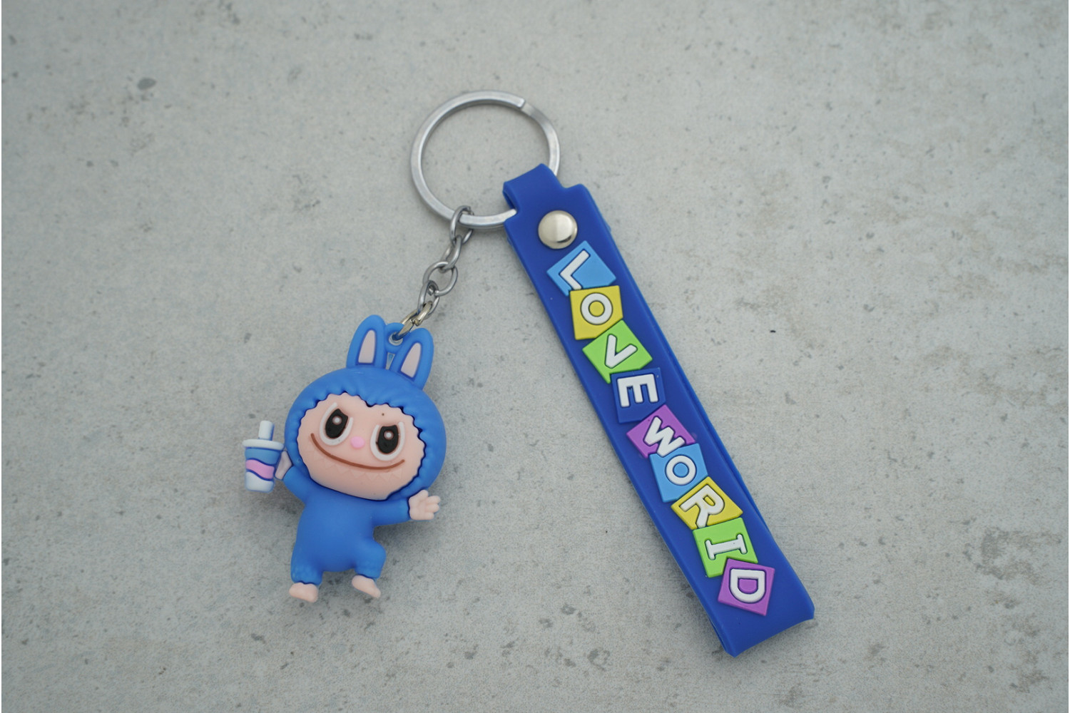 Брелок Labubu Love World синій з ремінцем — миловидний та практичний аксесуар для ключів або дрібних предметів, який поєднує компактність і яскравий дизайн.