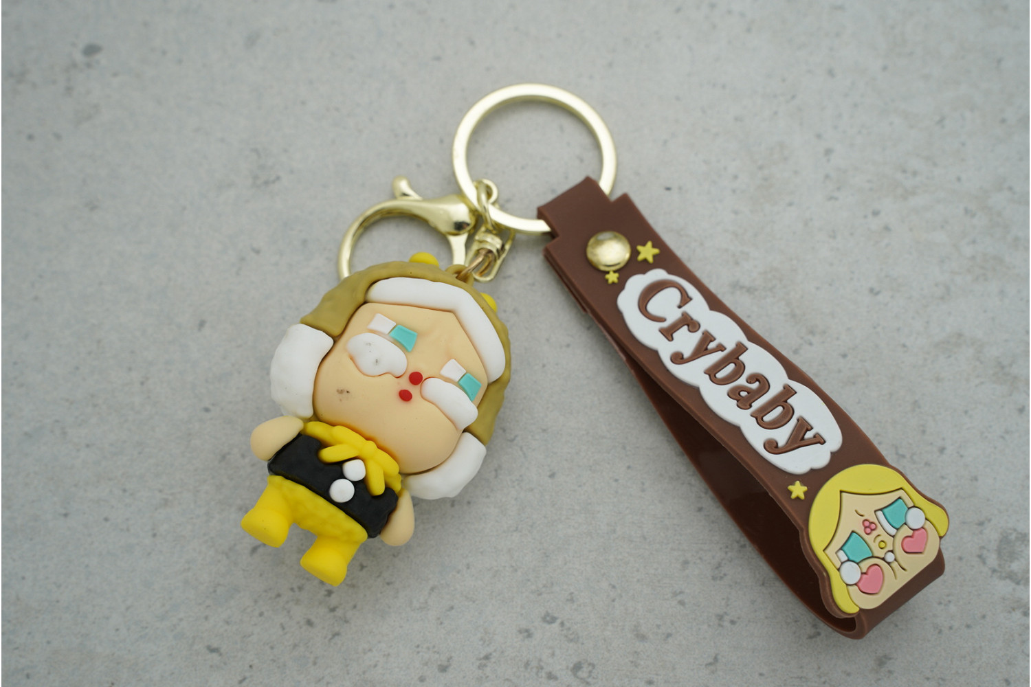 Брелок Cry Baby з русявим волоссям, ремінцем та карабіном — стильний і зручний аксесуар для ключів, який додає яскравого акценту у повсякденне життя.