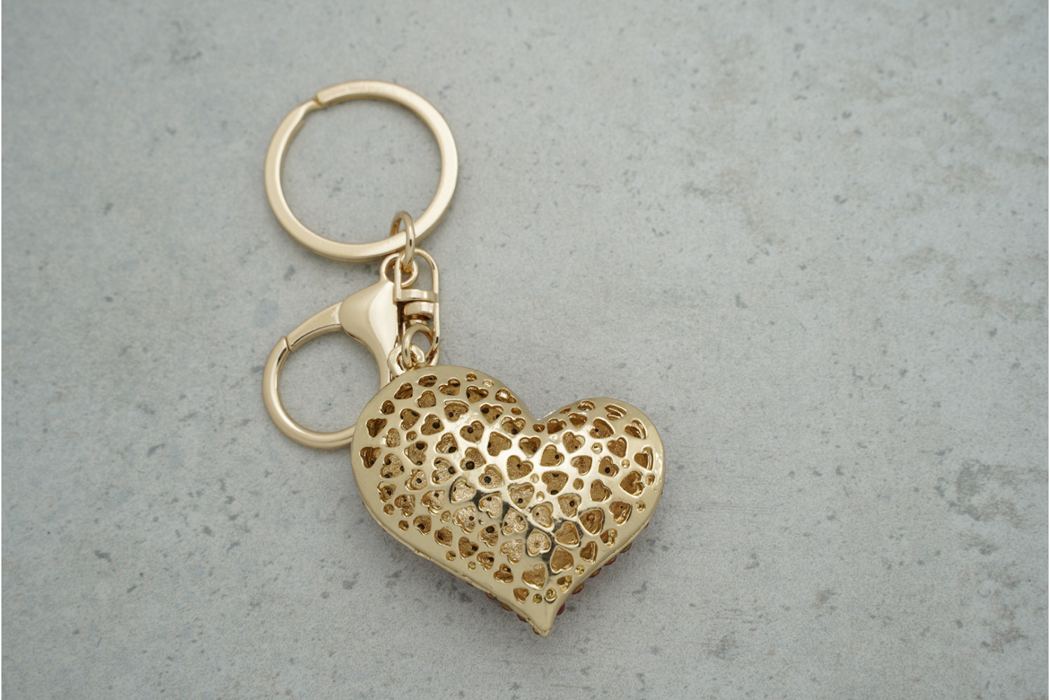 • Привабливий дизайн: форма серця з червоними стразами робить брелок елегантним та помітним.