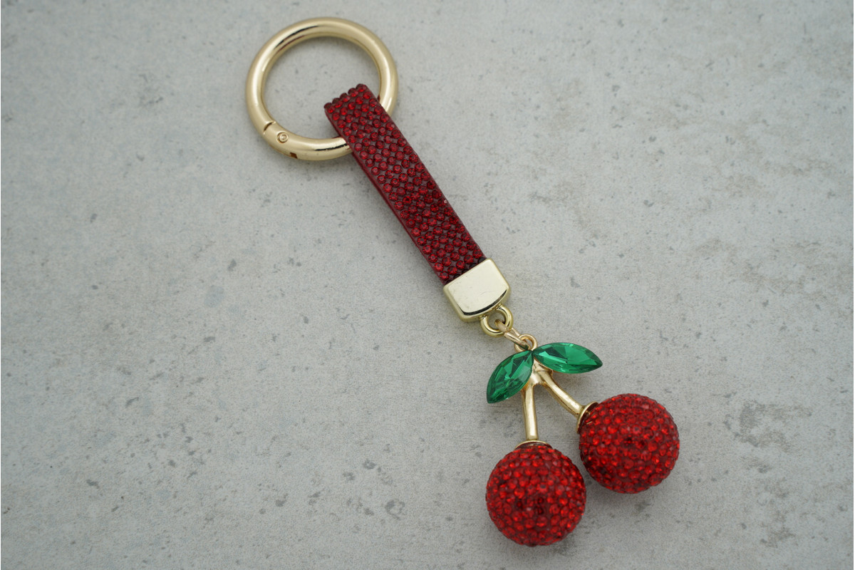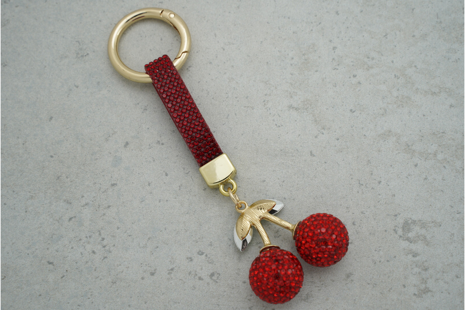 Брелок Вишня зі стразами (з кільцем + карабін)