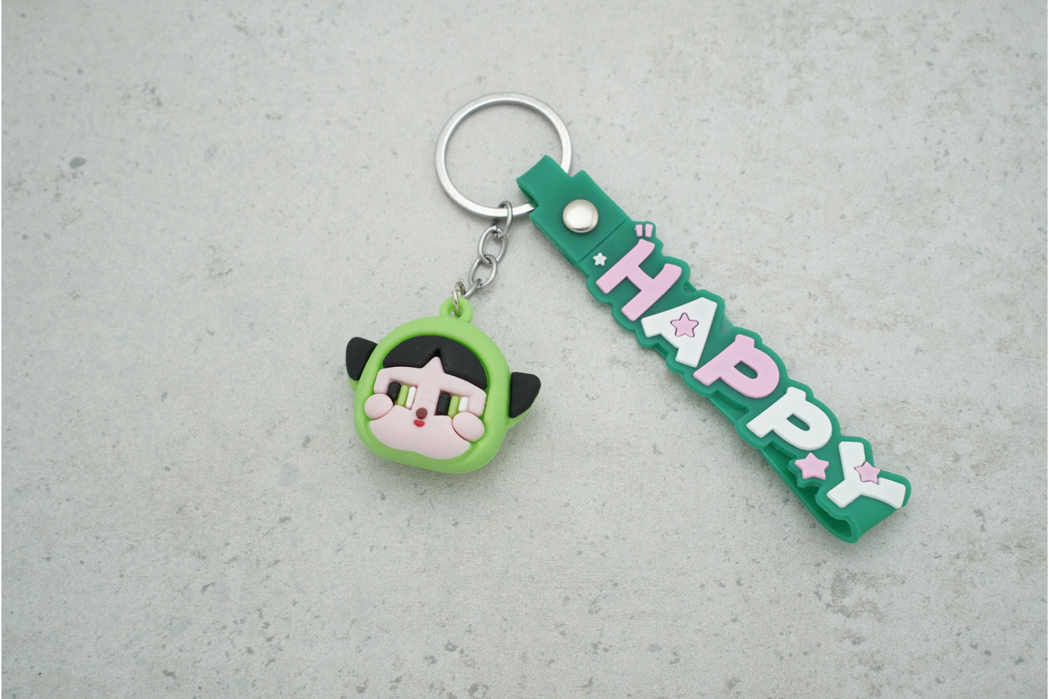 Брелок «HAPPY Cry Baby» з ремінцем зеленого кольору — зручний аксесуар для ключів, який поєднує практичність і яскравий дизайн для щоденного використання.
