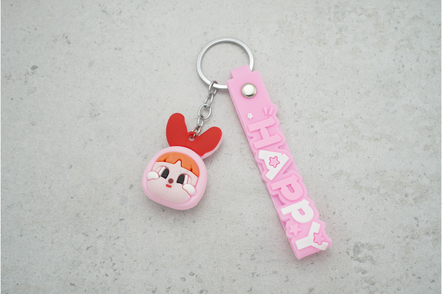 Брелок «HAPPY Cry Baby» з ремінцем рожевого кольору — яскравий та зручний аксесуар для ключів, який поєднує практичність і привабливий вигляд для щоденного використання.
