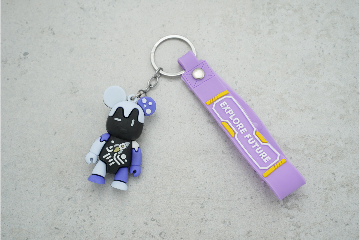 Брелок «Ведмедик Explore Future» з ремінцем лавандового кольору — стильний і зручний аксесуар для ключів, який поєднує практичність та приємний декоративний вигляд у щоденному використанні.