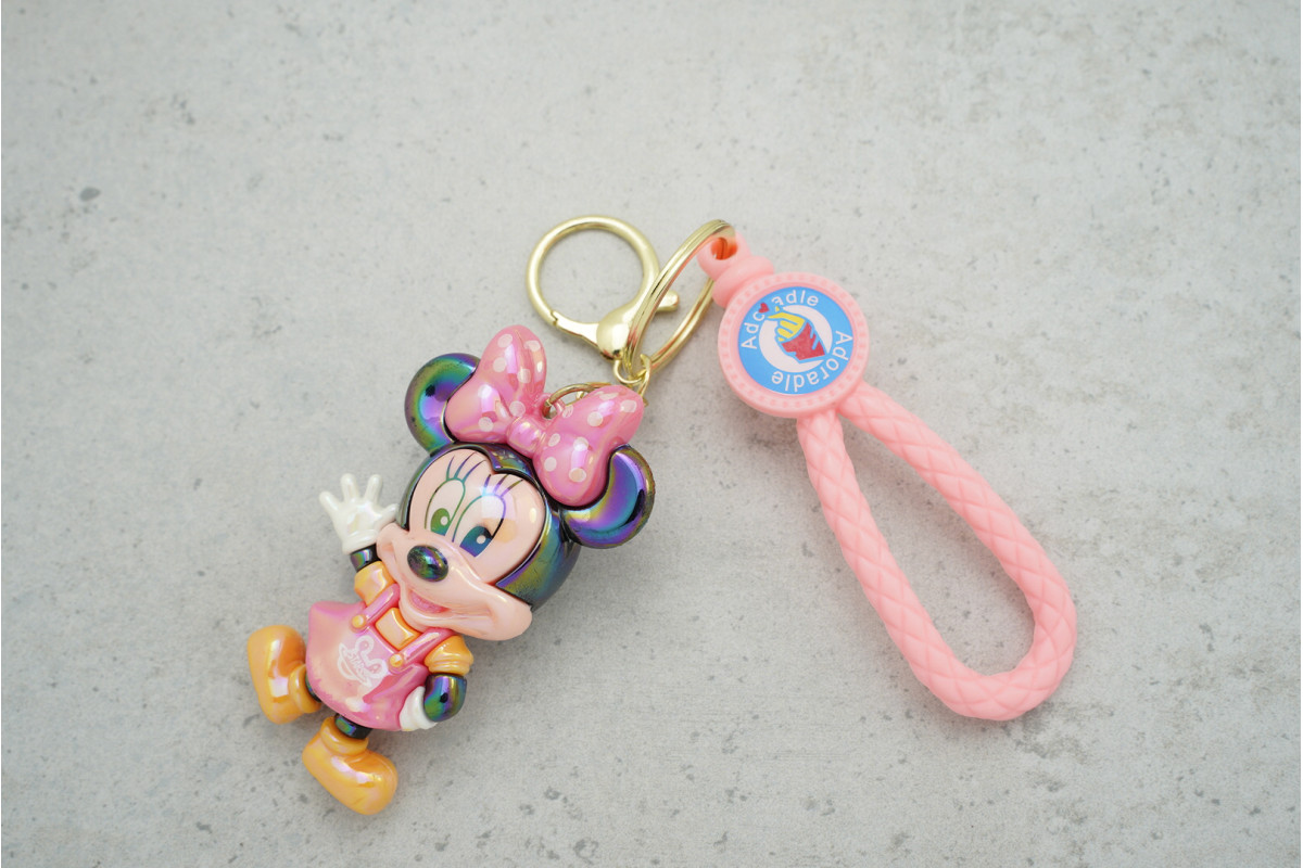 Брелок Мінні Маус, рожева з ремінцем і карабіном — яскравий та практичний аксесуар для ключів, який поєднує зручність використання та стильний дизайн.