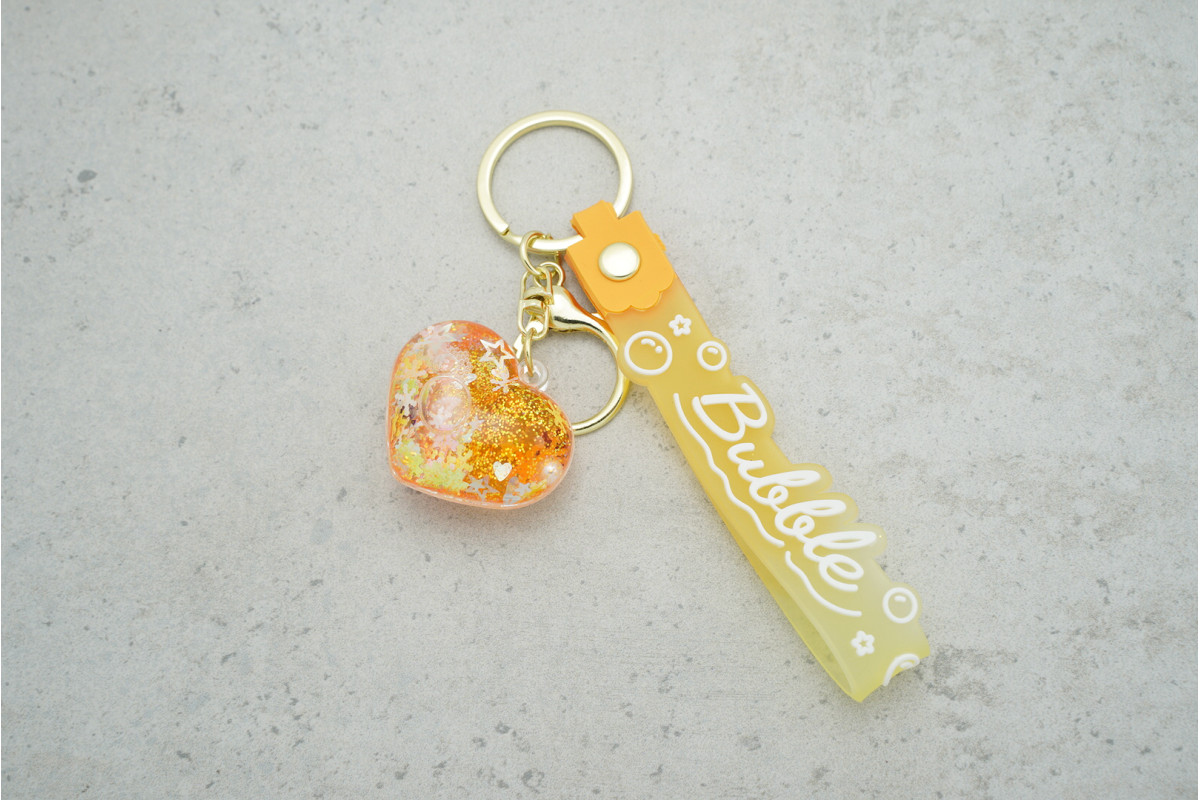 Брелок «Серце» жовтого кольору з блискітками (з ремінцем та карабіном) — яскравий і практичний аксесуар для зручного кріплення ключів, який поєднує стильний вигляд, надійність і компактність у повсякденному користуванні.