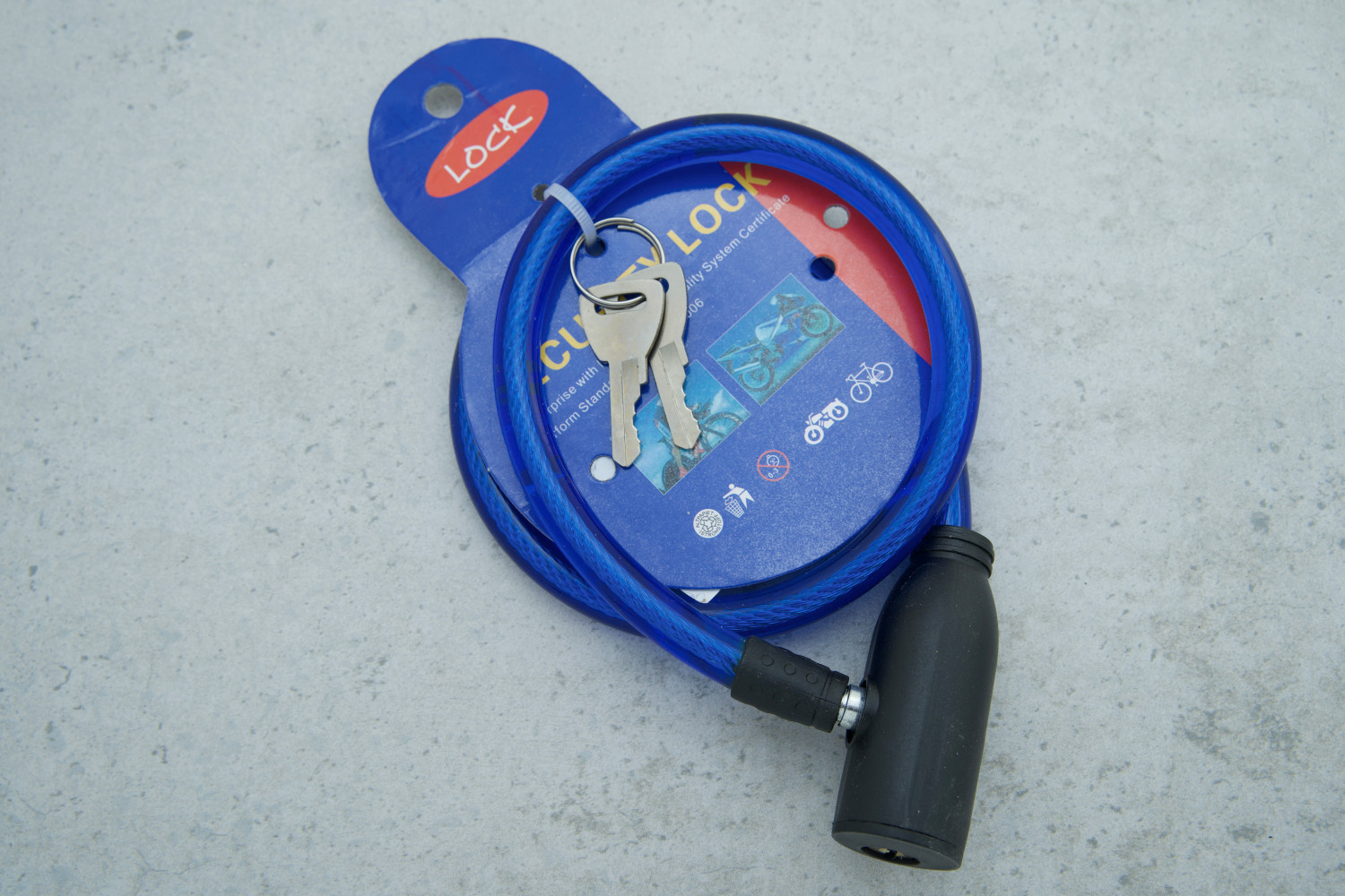 Замок велосипедний Security Lock, 2 ключа, 10х65см синій з чорним замком
