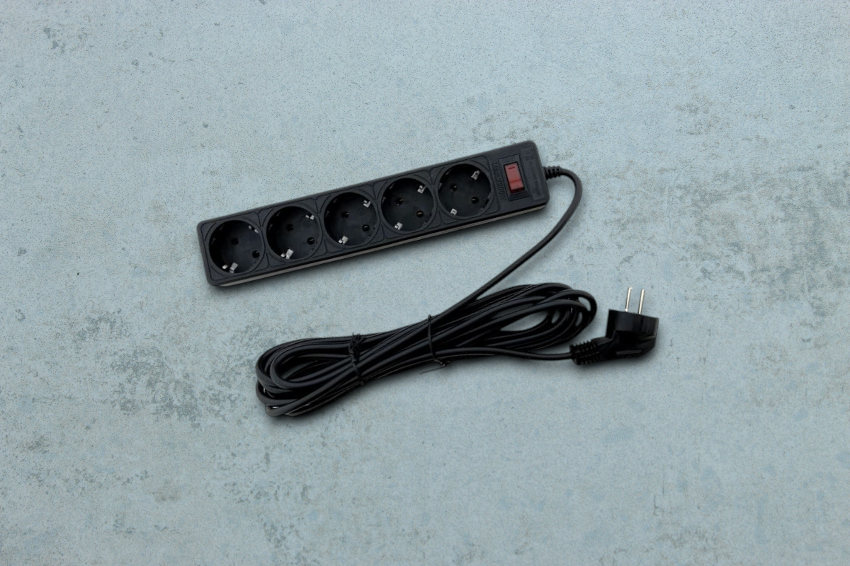 Мережевий фільтр Electro House, 5 м, 5 гнізд, чорний — надійний аксесуар для захисту електроприладів від перепадів напруги та одночасного підключення кількох пристроїв на відстані, що забезпечує безпечну та зручну організацію робочого або домашнього простору.