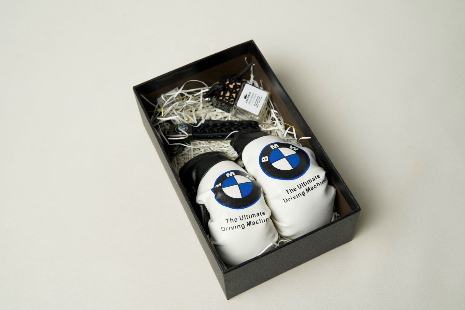 Подарунковий набір BMW 3в1 (міні рукавички + брелок із логотипом BMW + ароматизатор) — стильний комплект, створений спеціально для шанувальників легендарного бренду.
