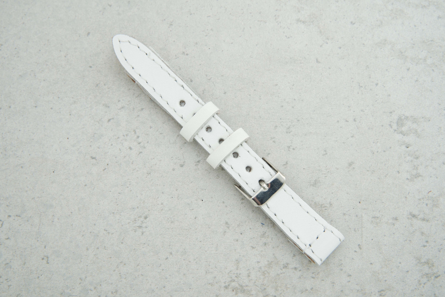 Ремінець для годинника 16мм, білий, шкіряний — стильний та практичний аксесуар для щоденного використання. Виготовлений із якісної шкіри, він надійно тримається на зап’ясті та підкреслює елегантність годинника.