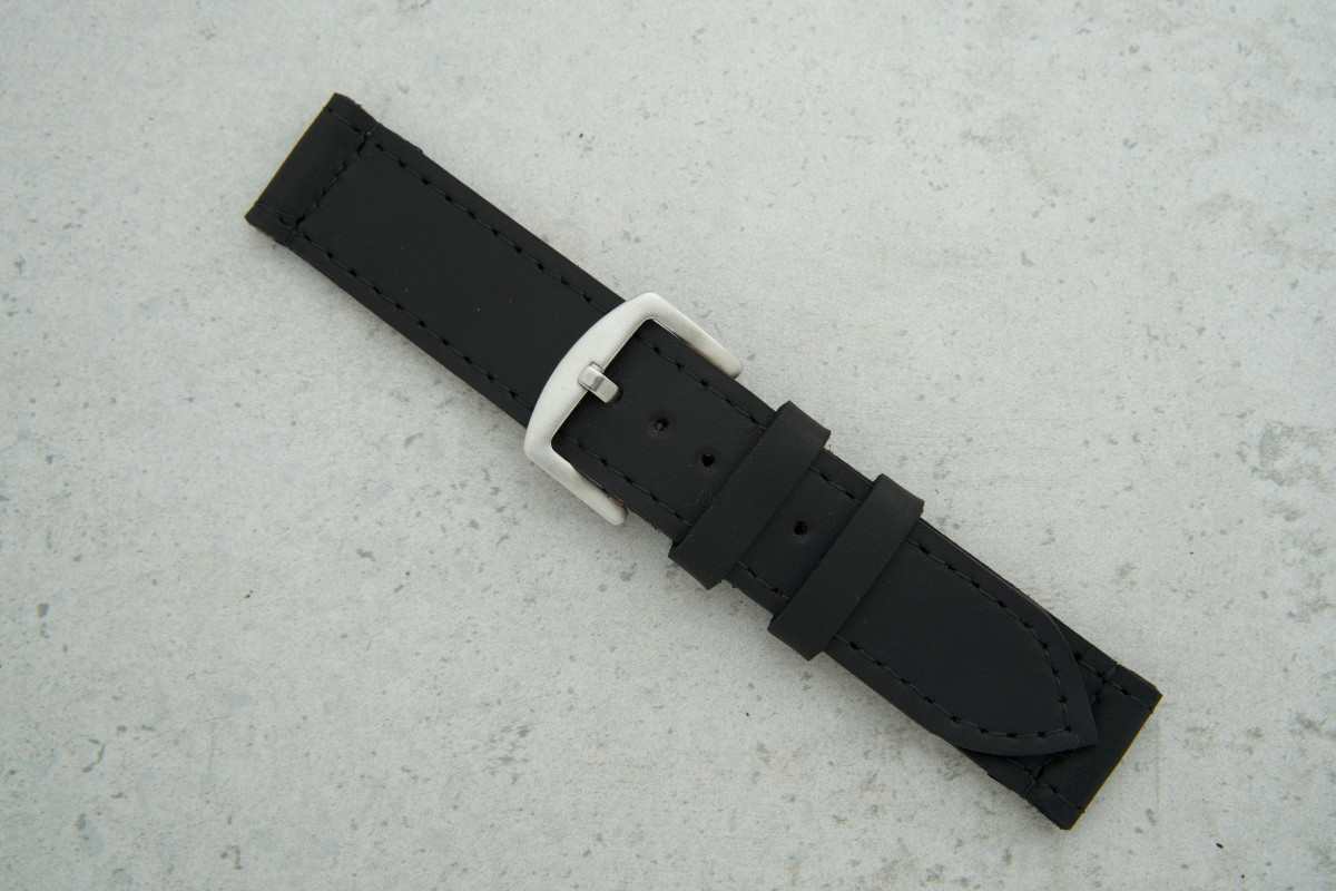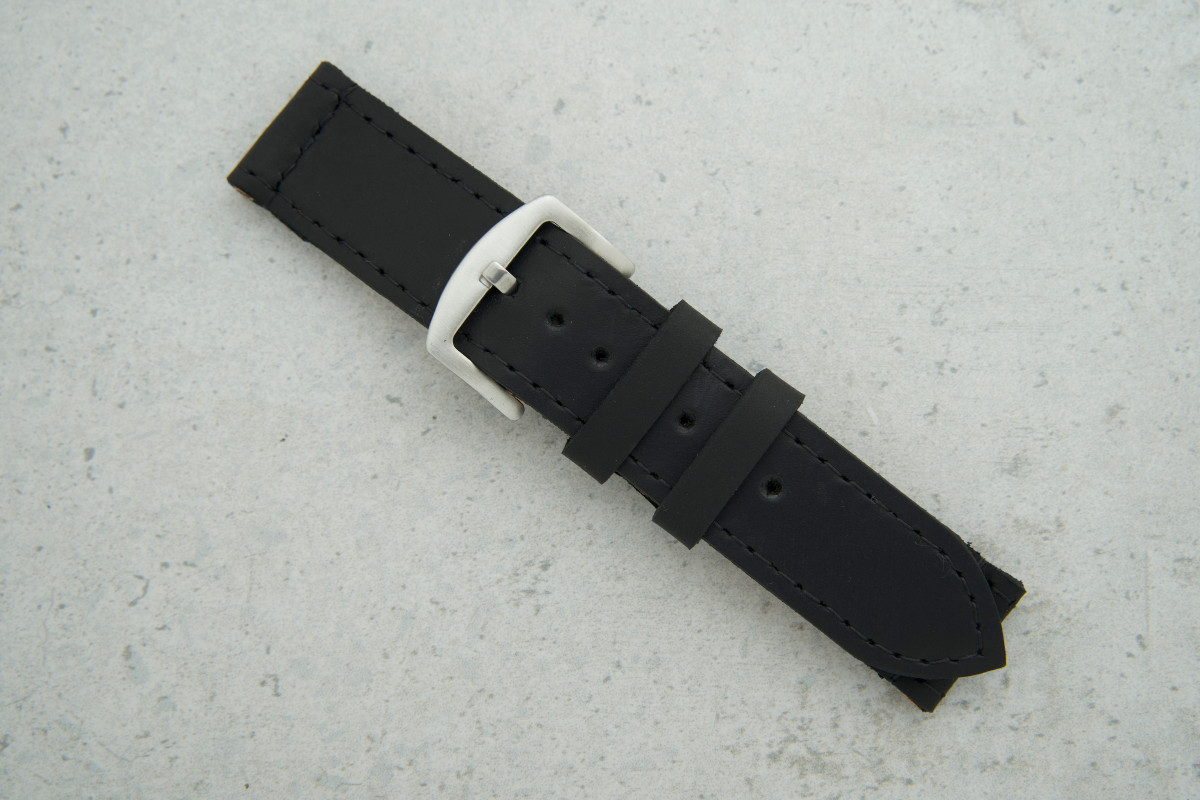 Ремінець 24 мм чорний шкіряний — класичний і надійний аксесуар для годинника, що поєднує зручність, довговічність та елегантний вигляд.
