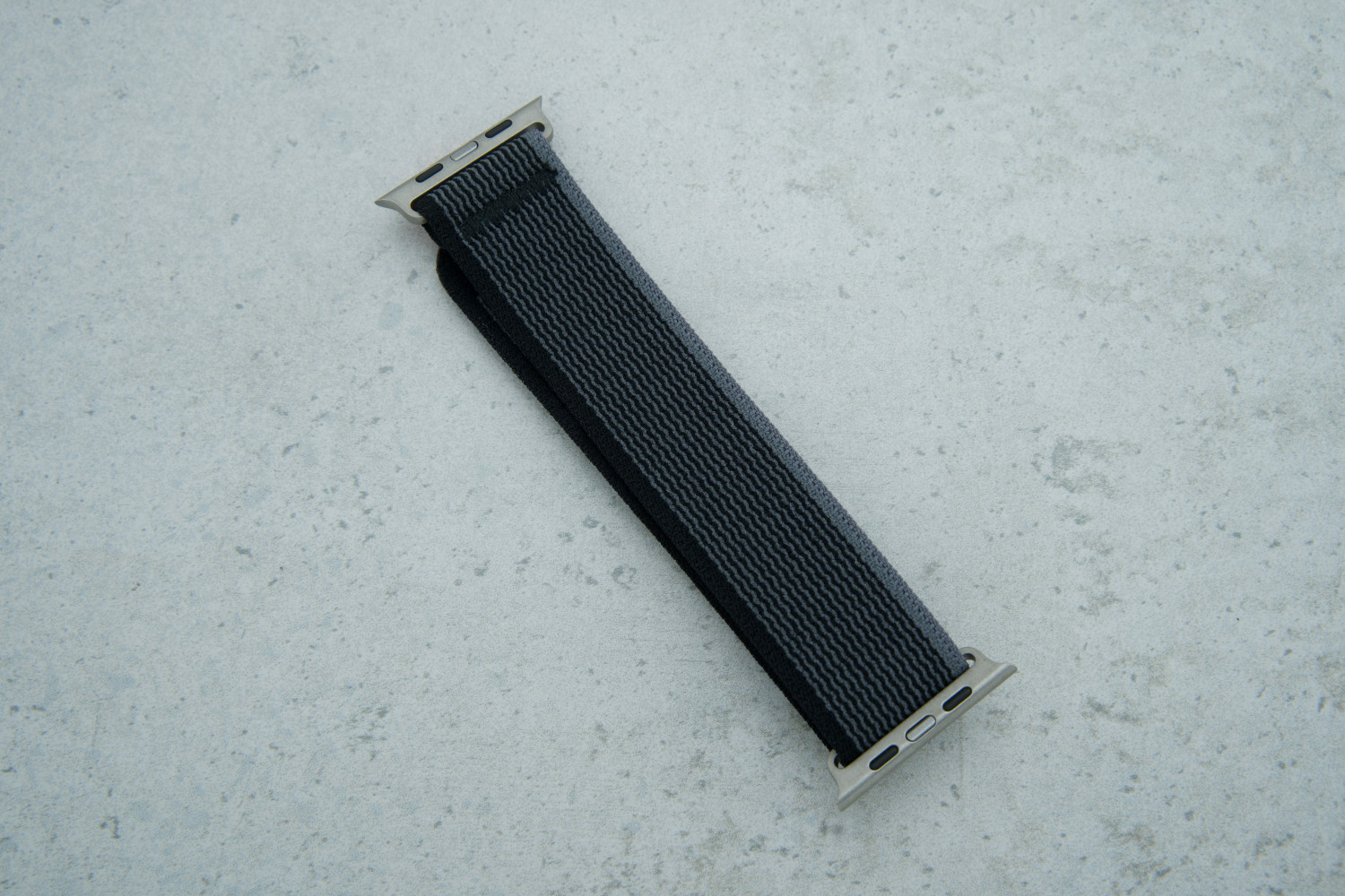 Ремінець для Apple Watch 42 / 44 Trail Loop чорно-сірий — зручний аксесуар для щоденного використання, що поєднує комфорт, легкість і сучасний вигляд.