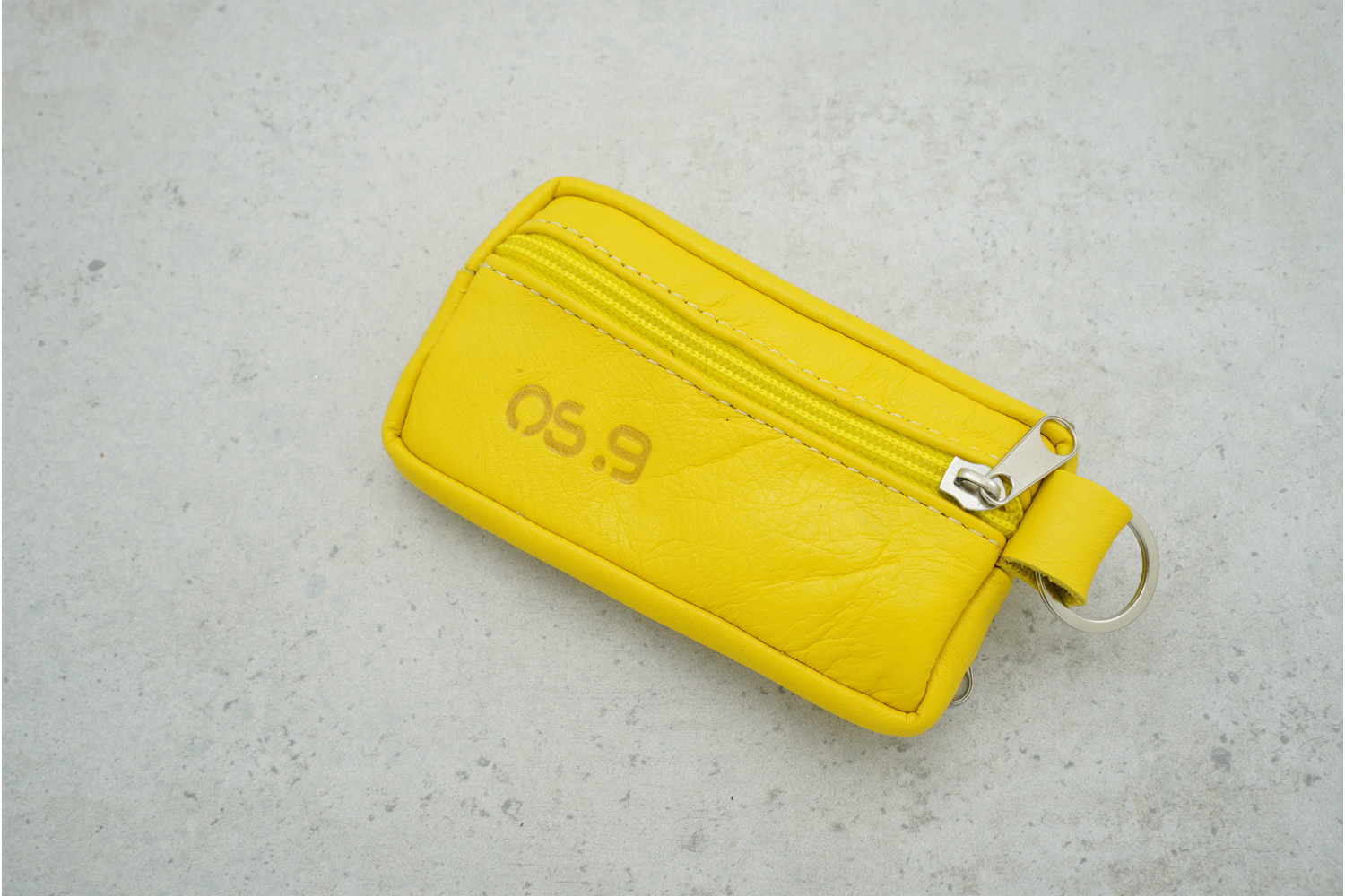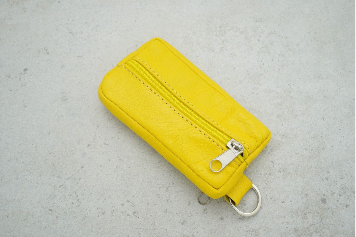 Ключниця OS.9 зі шкіри жовтого кольору (двостороння, 130×80 мм) — практичний та компактний аксесуар для зручного зберігання ключів у повсякденному використанні.
