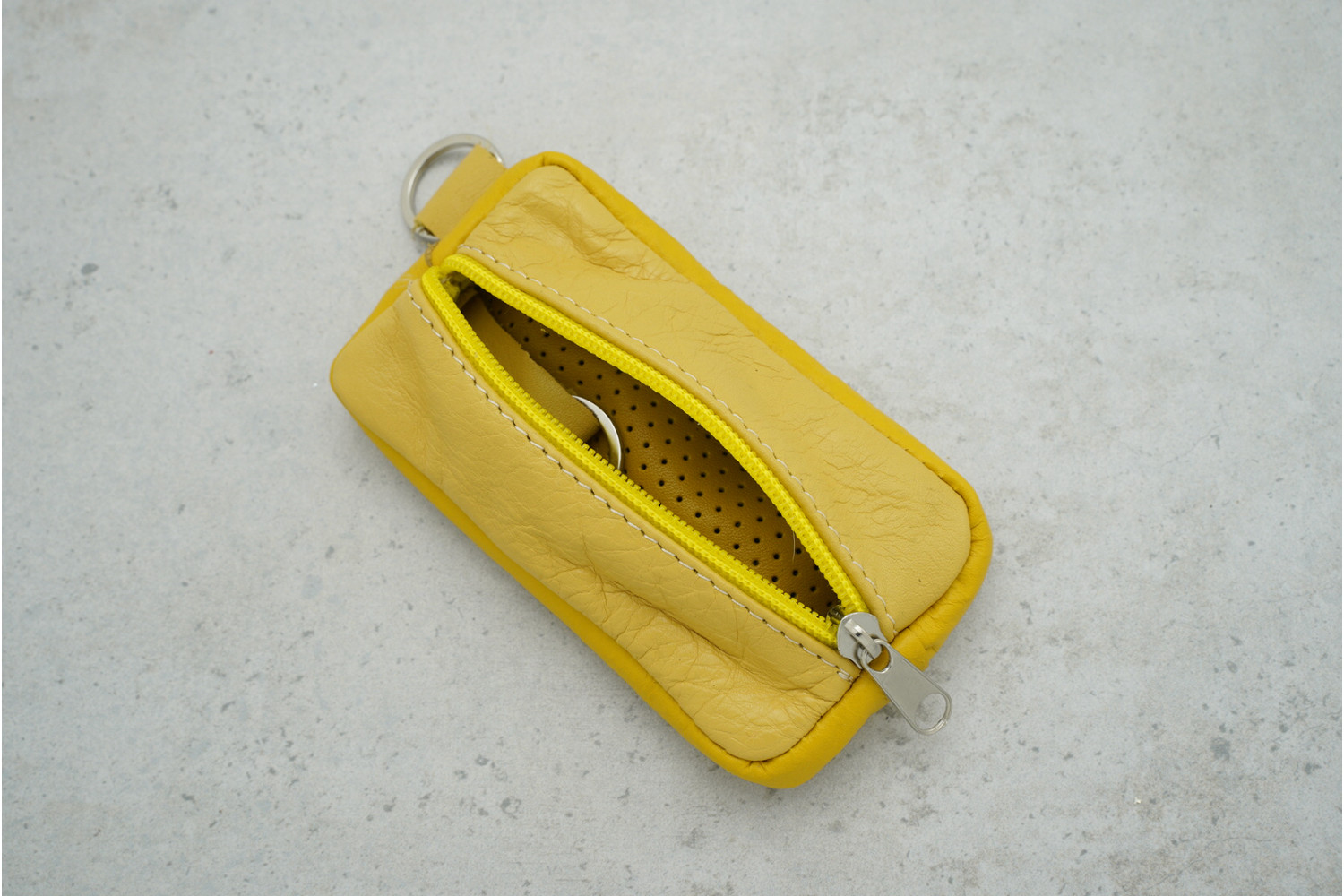 Ключниця OS.9 зі шкіри бежево-жовтого кольору (двостороння, 130×80 мм) — практичний аксесуар для зручного та охайного зберігання ключів у повсякденному користуванні.