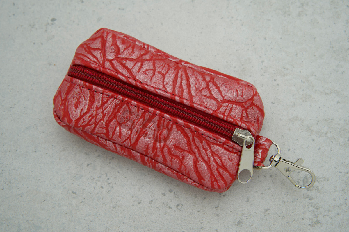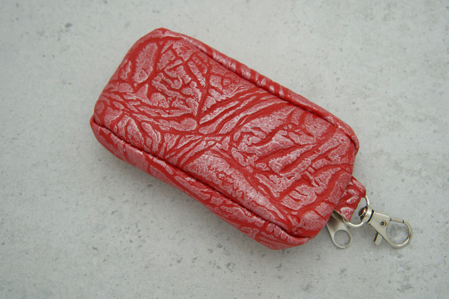 Ключниця червона шкіряна з карабіном — практичний аксесуар для зручного зберігання та організації квартирних ключів, що поєднує стиль і функціональність.