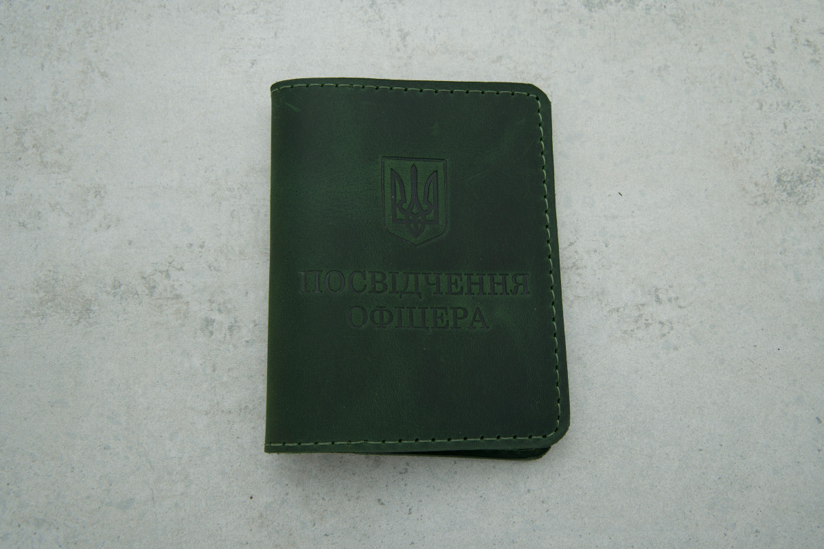 Обкладинка Посвідчення офіцера шкіра зелений — стильний і функціональний аксесуар для надійного збереження вашого офіцерського посвідчення.