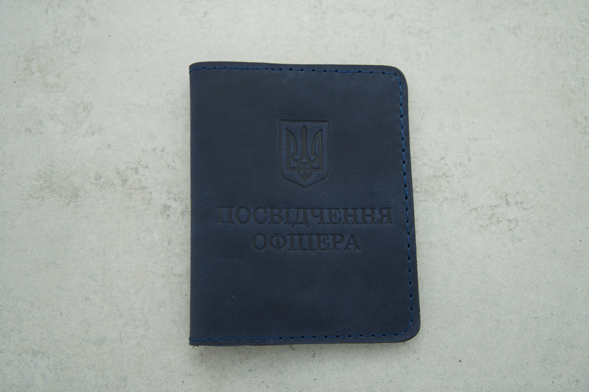 Обкладинка Посвідчення офіцера шкіра синя — стильний і надійний аксесуар для збереження вашого офіцерського посвідчення в ідеальному стані.