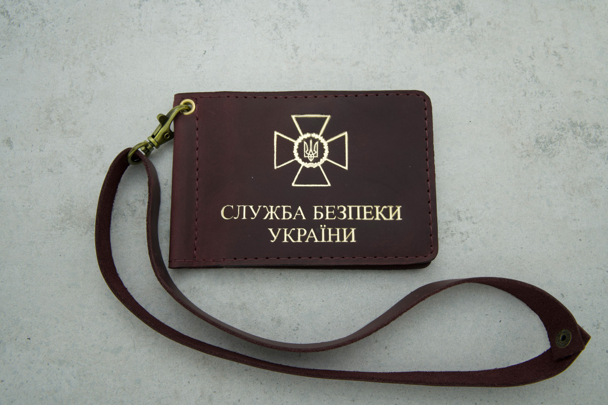 Обкладинка СБУ бордова з золотим шкіра — елегантний і надійний аксесуар для захисту вашого документа Служби безпеки України.