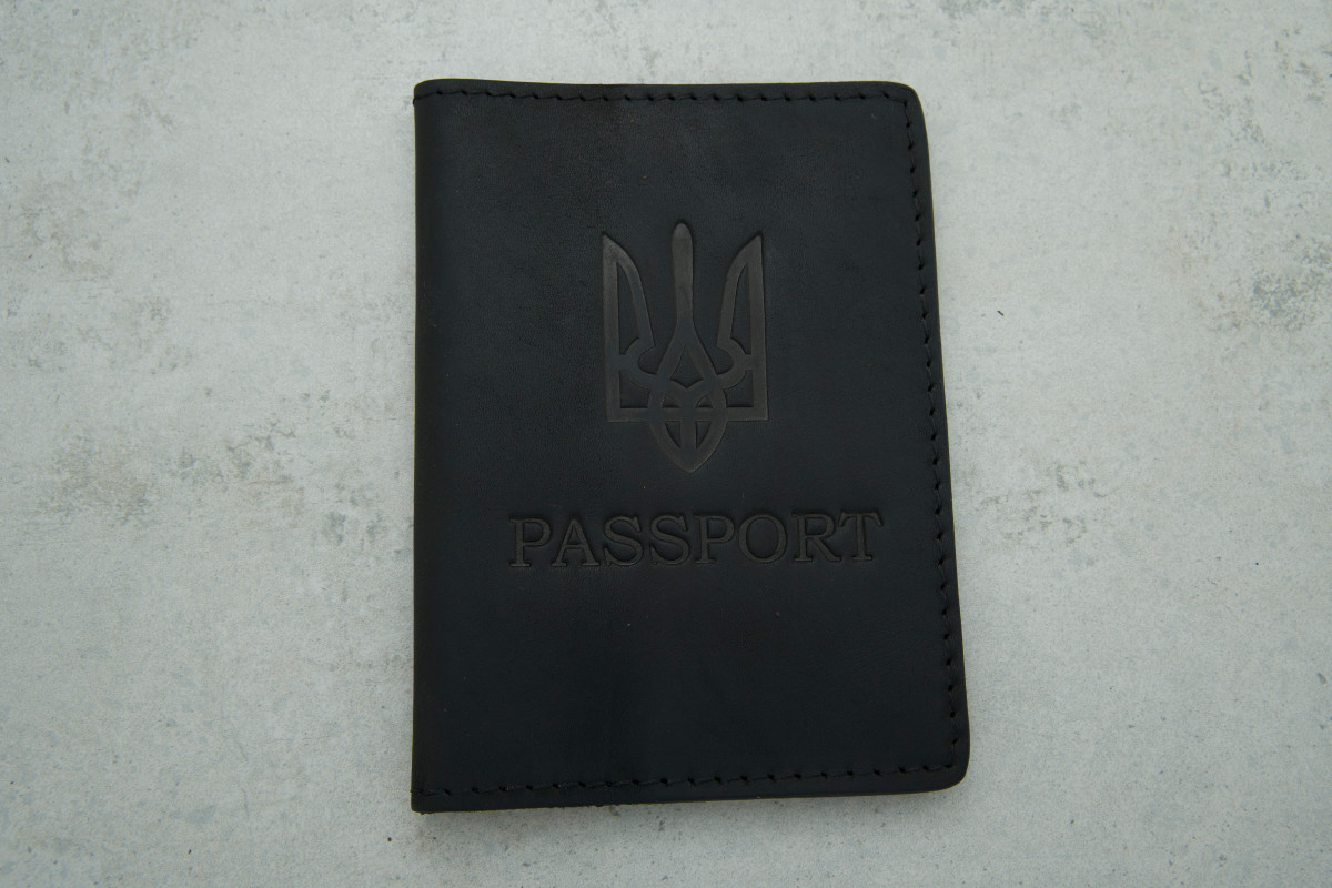 Обкладинка на паспорт шкіра чорна — елегантний і зручний аксесуар для надійного збереження вашого паспорта під час повсякденного використання.