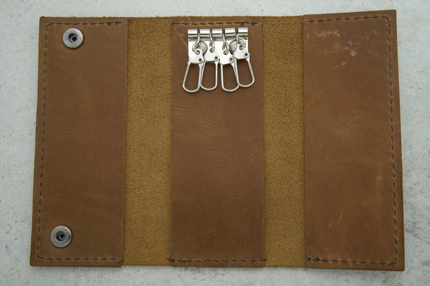 Ключниця 2 кнопки, шкіра, коричнева допомагає зберігати ключі в порядку та робить щоденне користування зручним і стильним.