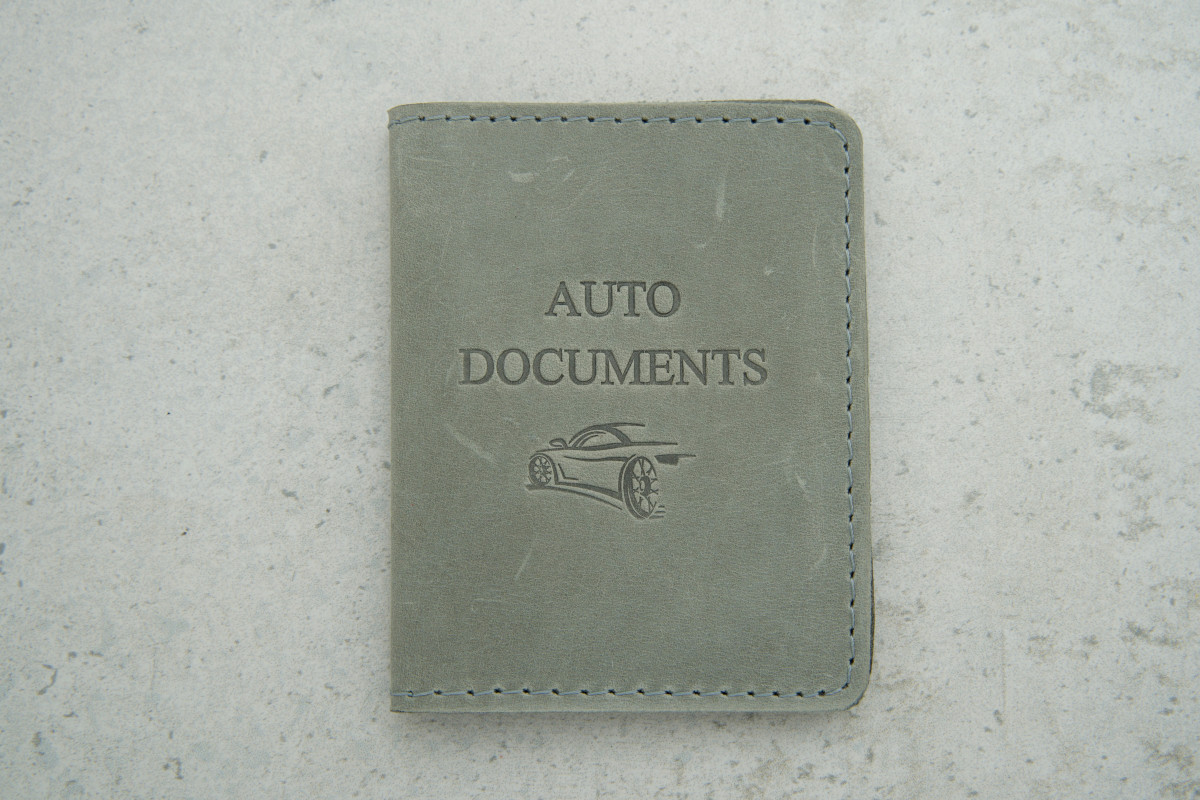 З цією сірою шкіряною обкладинкою ваші автодокументи та картки будуть надійно захищені й завжди акуратно організовані.