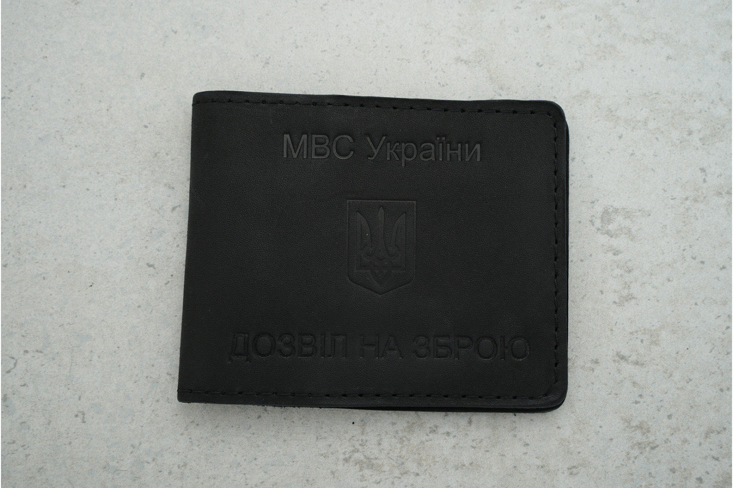 Обкладинка для дозволу на зброю з чорної шкіри — практичний та стримано стильний аксесуар, створений для надійного захисту важливого документа.