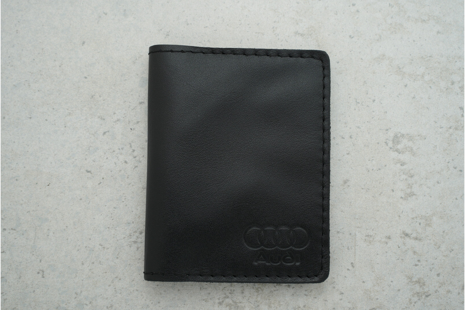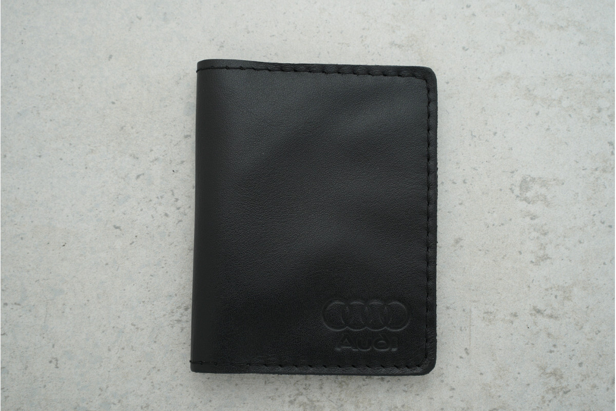Обкладинка-картхолдер Audi з чорної шкіри — компактний та практичний аксесуар для щоденного зберігання карток і документів.