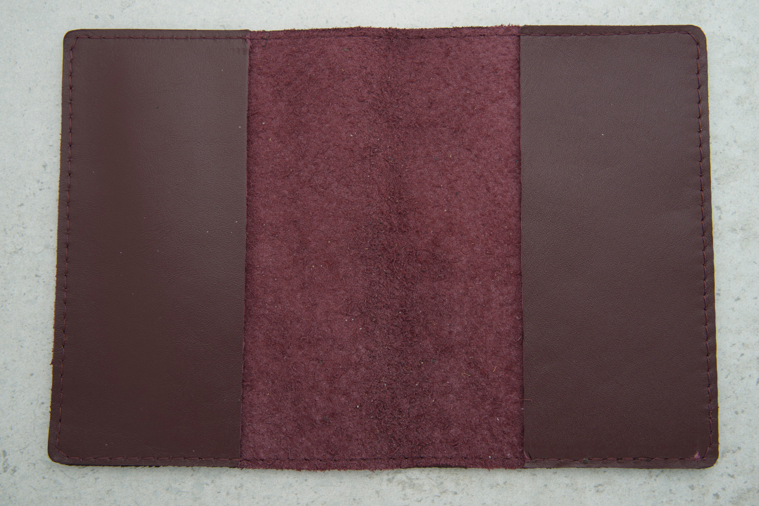 Обкладинка на паспорт бордового кольору з шкіри — практичний та стильний аксесуар, який захищає паспорт від зношування, подряпин та пошкоджень, зберігаючи його охайний вигляд під час щоденного використання.