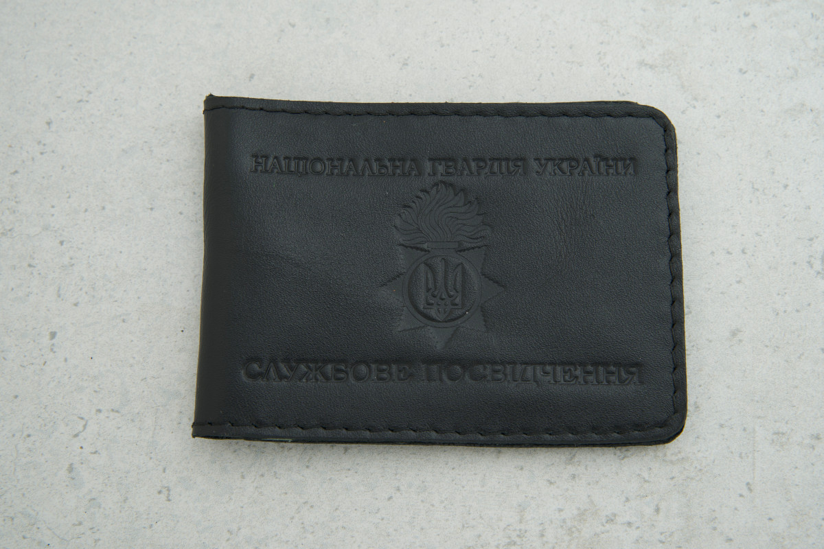 Обкладинка Нац Гвардія, чорна шкіра забезпечує надійний захист документів і додає порядку та стилю у щоденне використання.