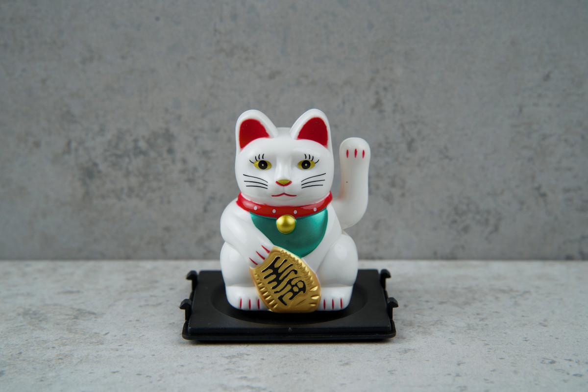 Японський кіт Манекі Неко 6,5 см білий (на сонячній батареї) — маленький оберіг, який наповнює дім, офіс або магазин світлом, гармонією та позитивною енергією. Під сонячним світлом котик весело махає лапкою, створюючи спокійну та приємну атмосферу.